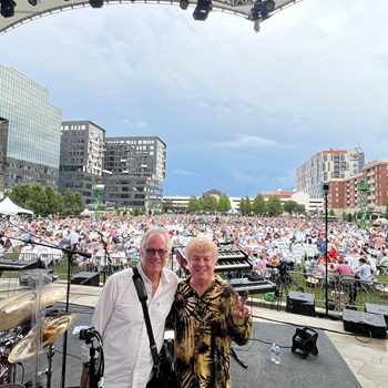 ‘Wonderful’: Burleigh Drummond and Joe Puerta with an adoring crowd. (Courtesy Photo)