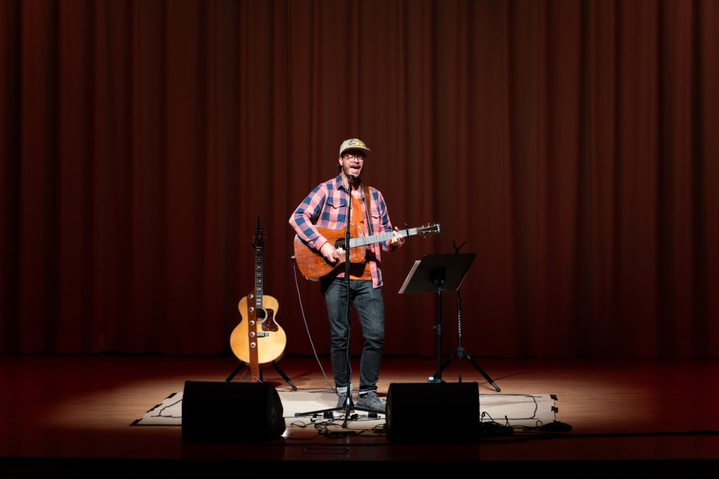 Ever congenial and complimentary of St. Cecilia’s historic Royce Auditorium — even encouraging the audience to attend the venue’s chamber music concerts — Lee showed off the hall’s pristine acoustics in Royce Auditorium during the concert by performing his first song, “Skipping Stone,” away from the microphone.