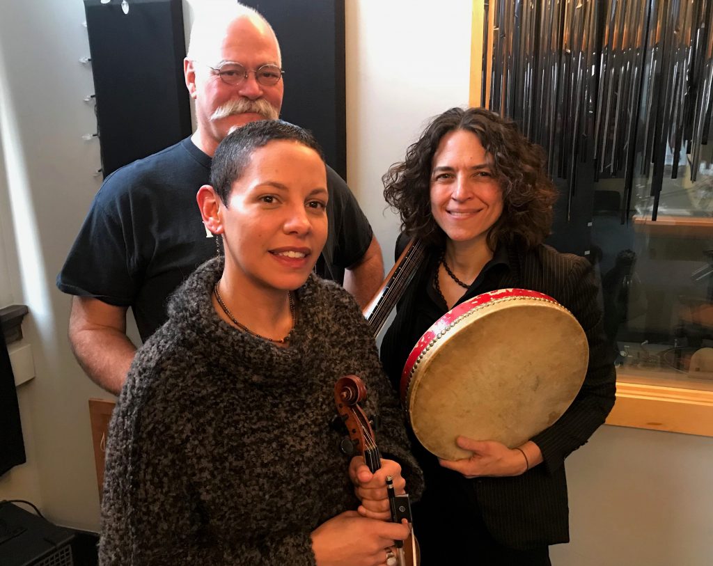 Gearing Up for a Very Hectic Week: Jim Spalink, Michele Venegas and Carolyn Koebel of An Dro. (Photo/Local Spins)