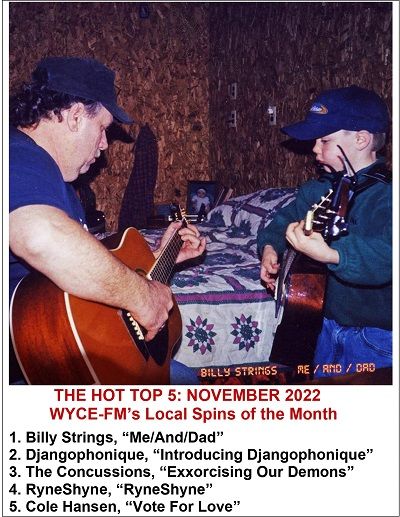 Grand Rapids surf-rock band The Concussions’ new anniversary compilation, “Exxorcising Our Demons,” came in at No. 3, followed by Lowell singer-songwriter RyneShyne’s self-titled recording and Grand Rapids tunesmith Cole Hansen’s latest album, “Vote for Love” (which stood at No. 3 in October).