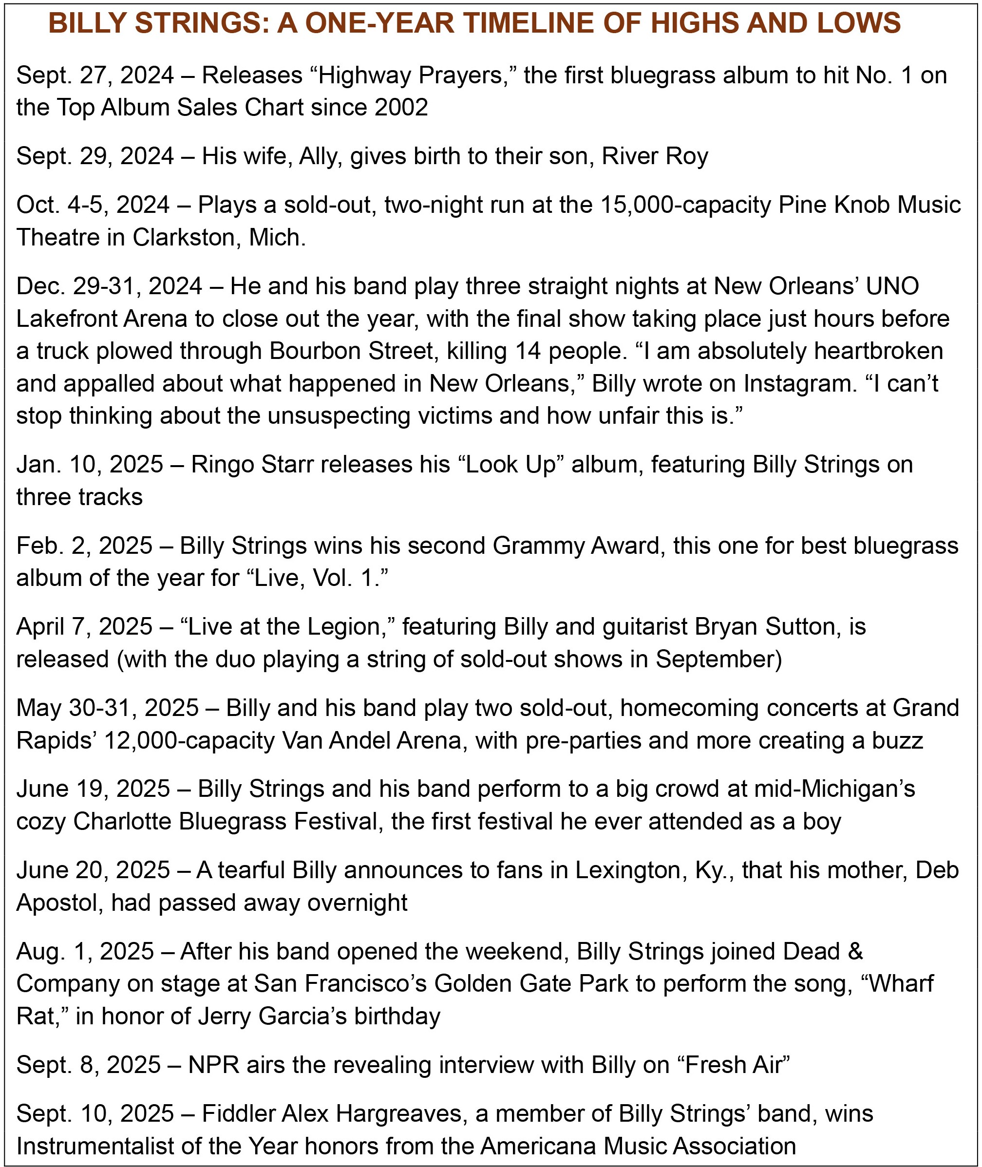 LISTEN TO THE COMPLETE ‘FRESH AIR’ INTERVIEW AT NPR.ORG HERE. SCROLL DOWN FOR A ‘BILLY STRINGS TIMELINE’ OF THE PAST YEAR