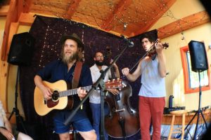 • Luke Winslow King has performed at Blissfest so many times that he seemed to breeze through his Friday afternoon performance. In addition to King’s charming, New Orleans-inspired blues tunes, the Cadillac singer-songwriter opted to play a few slower, “sweet ones” to fit the mood of the festival. A large, receptive crowd paid no mind to a light drizzle throughout the set and several dozen couples seemed to rejoice in it, dancing along despite the rain.