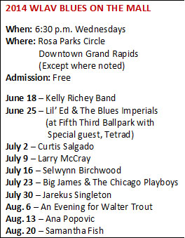 West Michigan classic rock radio station WLAV-FM (96.9) today revealed its 2014 lineup for the 23rd edition of the 97 LAV Budweiser Blues on the Mall series, a Wednesday night concert tradition that fires up again on June 18 with the Cincinnati-based Kelly Richey Band at Rosa Parks Circle in downtown Grand Rapids.