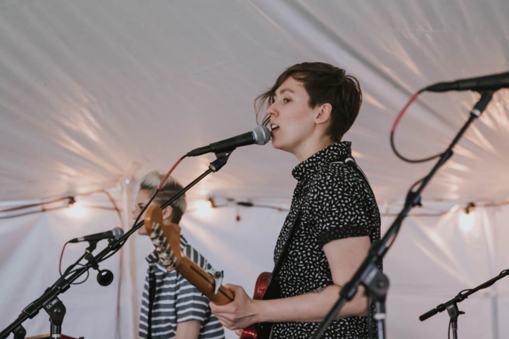 Lipstick Jodi began playing to a light crowd, but as other campers sensed the energy coming from the large white performance tent, the audience size doubled by the end of the band’s 14-song set which featured high-energy indie-pop/alt-rock. (Some audience members described the band’s debut performance at the Bus Benefit as exuding an ’80’s vibe.)