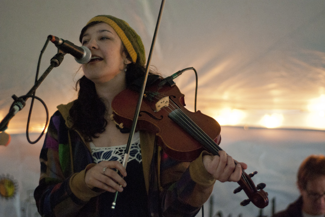 By 7 p.m., Roosevelt Diggs – a four-man Americana/folk/country ensemble from the Grand Rapids area – had kicked off the evening, filling the main tent with heavy basslines and twang. The group’s set was stacked with original tunes so high-energy and fast-paced that those in the tent had no choice but to dance, especially as temperatures dipped into the 40s.