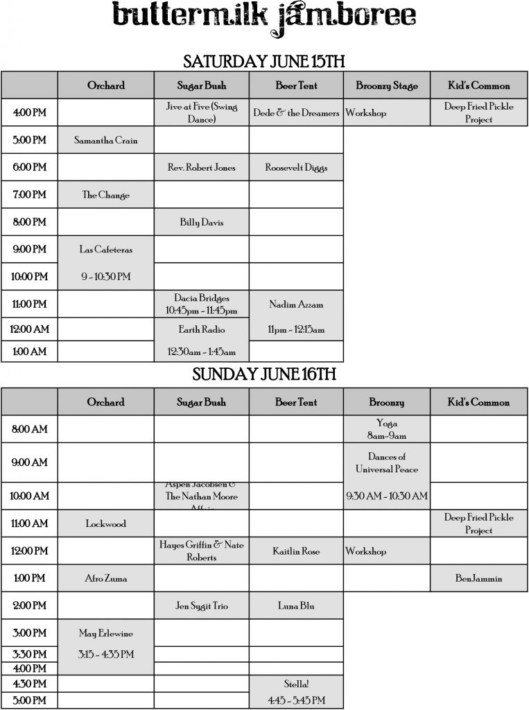 BUTTERMILK JAMBOREE 2019: THE SCHEDULE