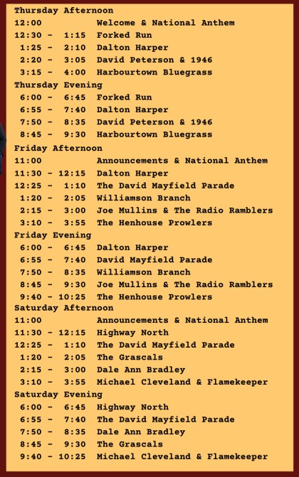 CHARLOTTE BLUEGRASS FESTIVAL SCHEDULE
