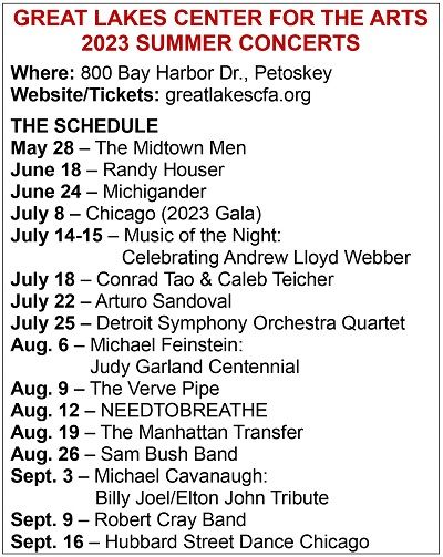 At Bay Harbor, the tony vacation and resort complex south of town, the Great Lakes Center for the Arts is celebrating its sixth year with a signature show by Chicago at its annual Gala fundraiser. But that sold-out show (join a waitlist for $350 tickets online here) is just the tip of the iceberg, with comedy, magic, lectures and loads of music on tap.