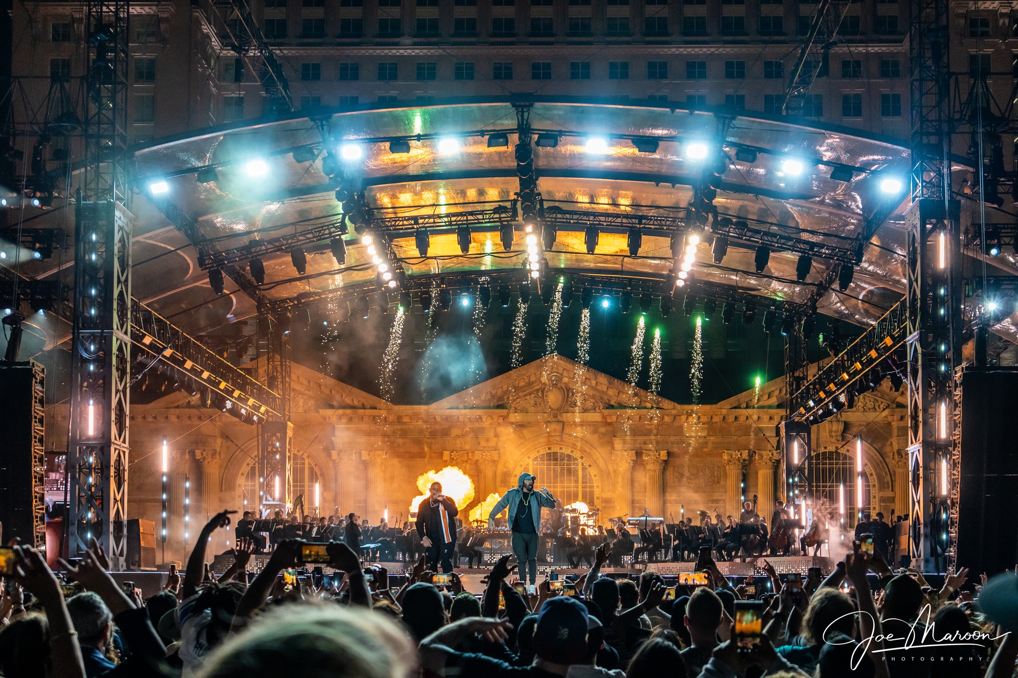 Eminem’s Spectacle: The show-closing extravaganza with Michigan Central Station as a backdrop. (Photo/Joe Maroon Photography)