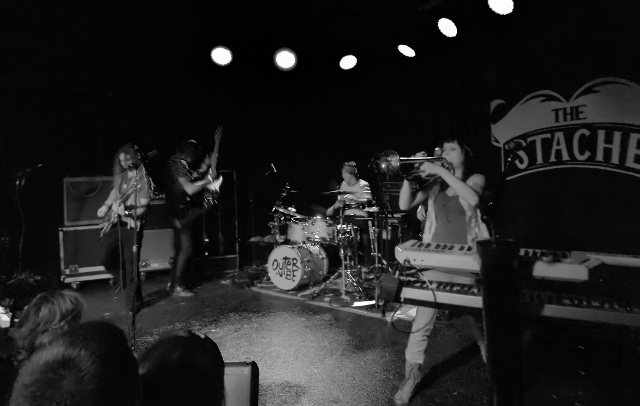 • Ebullient members of The Outer Vibe unveiled four impressive new songs during an intimate-yet-rollicking affair at The Stache inside The Intersection on Thursday, spotlighting their new drummer Noah Snyder in the process. (The young musician even came out from behind the kit to sing a hyper-animated rendition of Led Zeppelin’s “Rock and Roll” to roars of approval from rambunctious fans.) Lead singer Sean Zee said Snyder officially joined the band in January after drummer Jeff Brems moved to Cleveland with his girlfriend to pursue a teaching job. Snyder had served as a roadie with the band so already was “a part of our family,” Zee said, noting Snyder offers “new promise and energy. That’s why we’ve been able to write so much new music.” Check out an exclusive Local Spins video of the band’s live performance of the new tune, “Take It Slow,” below.