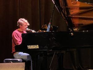 In the end, that CMU student, Porter Kenyon, of Cedar Springs, won the adult division of the contest for the second year in a row after performing a new original song. He took home the $500 top prize, with singer Lauren Hendrick in second and pianist Mike Boerman in third.
