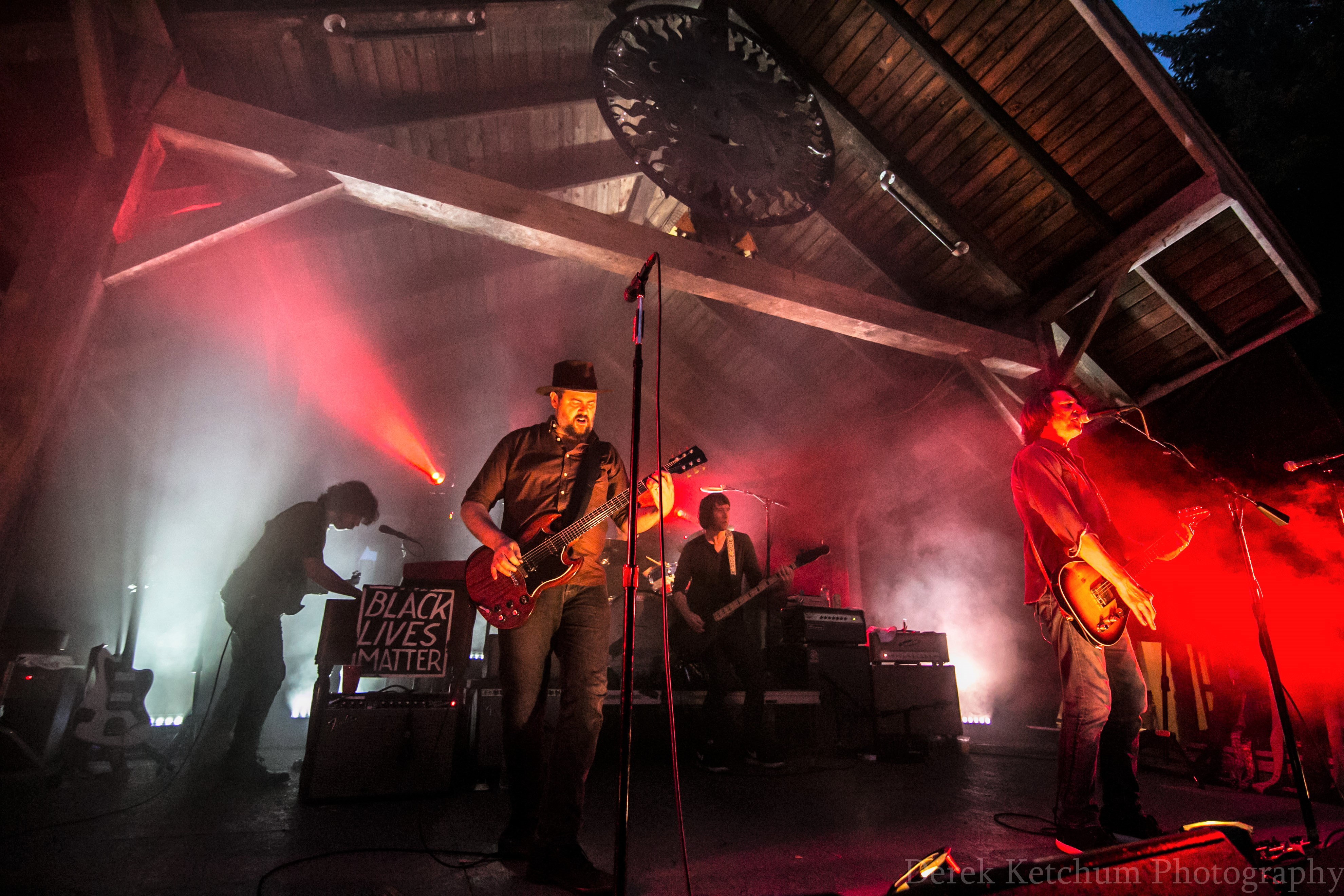 Epic Show in the Rain: Drive-By Truckers playing at Bell’s Brewery Beer Garden on Friday night. (Photo/Derek Ketchum)