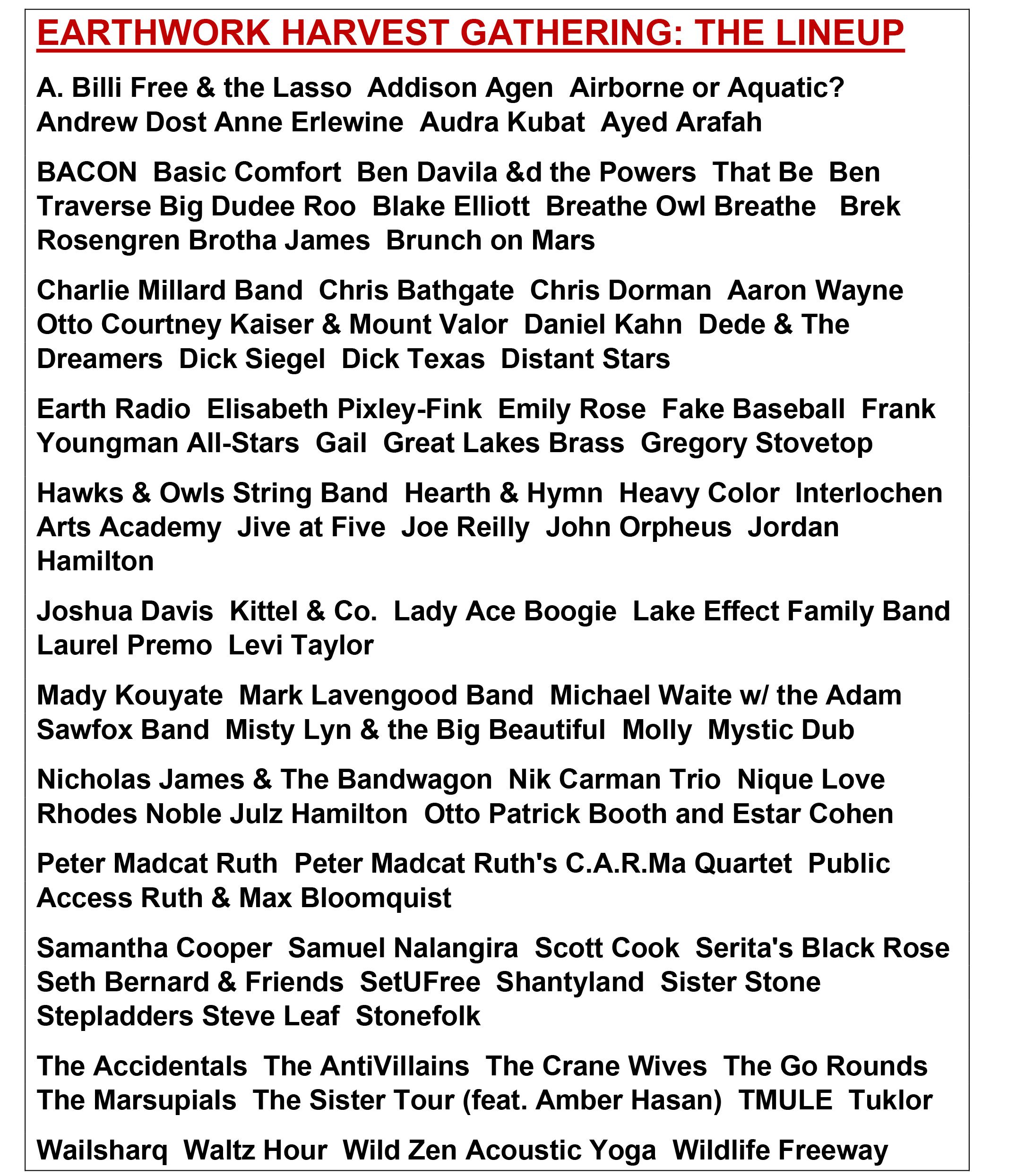 SCROLL DOWN FOR HARVEST GATHERING LINEUP