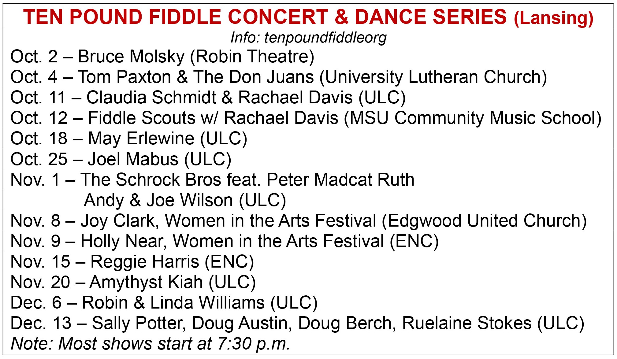The Ten Pound Fiddle has long been an institution in the Lansing area, having hosted concerts and dances since 1975.
