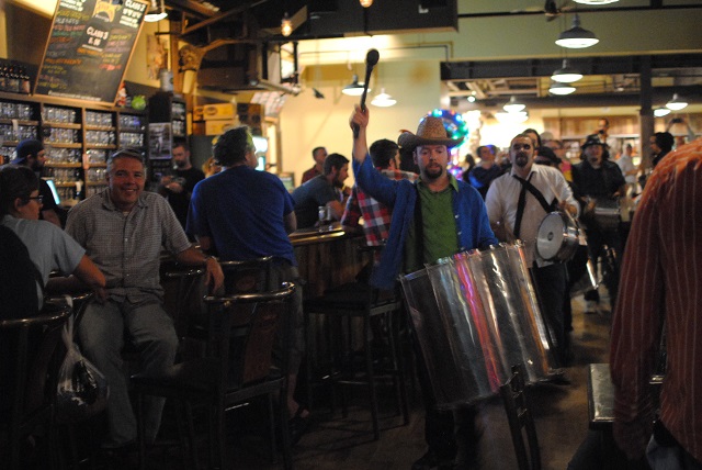 Musical Christening: Cabildo’s percussion brigade topped off an evening of vibrant music as part of Thursday’s grand reopening bash at Founders. (Photo/Anna Sink)