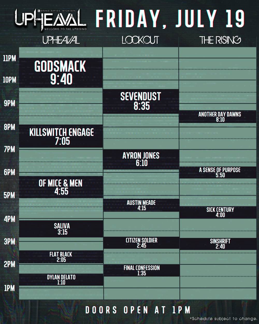 Metalcore’s As We Divide is actually playing Grand Rapids for the first time, so igniting Upheaval at 5:50 p.m. Saturday “is an insane introduction to the metal scene out there,” said singer Robbie Hunt. “People can expect to enjoy a set that requires you to get involved, jump around … Can’t beat the fact that we get to see Beartooth and Bad Omens there as well.”