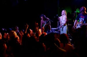 With an already-pumped-up crowd cheering in anticipation, Freel confidently shimmied onto the stage in a purple fringe jacket and launched into Trauna’s debut single, “Feel a Little.” The audience danced, took videos and otherwise encouraged the new band which oozed an undeniable chemistry throughout its performance.