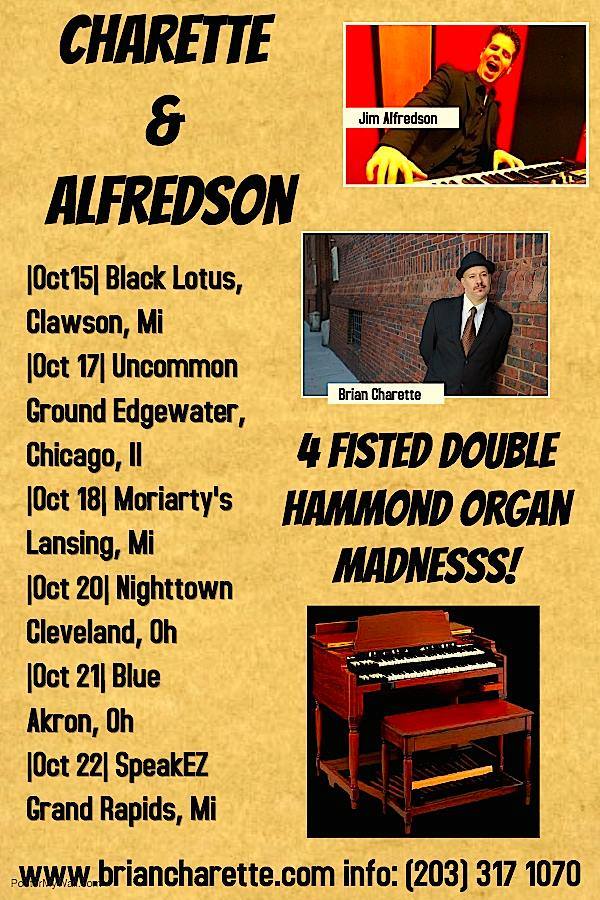 Alfredson, of Lansing, is teaming up with Grammy-nominated New York City jazz organist and bandleader Brian Charette for a limited, six-show Midwest tour that wraps up at 8 p.m. Saturday at SpeakEZ Lounge, 600 Monroe Ave. NW, in Grand Rapids.