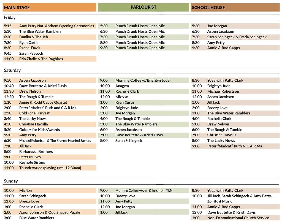 Indeed, with the likes of regional favorites Erin Zindle & The Ragbirds, Rachael Davis, Annie & Rod Capps, Peter “Madcat” Ruth, Thunderwude, Peter Mulvey, Jill Jack, Barbarossa Brothers, Blue Water Ramblers, Dave Boutette & Kristi Davis, Aspen Jacobsen and many more on the three-stage docket, the festival re-start has plenty of star power.