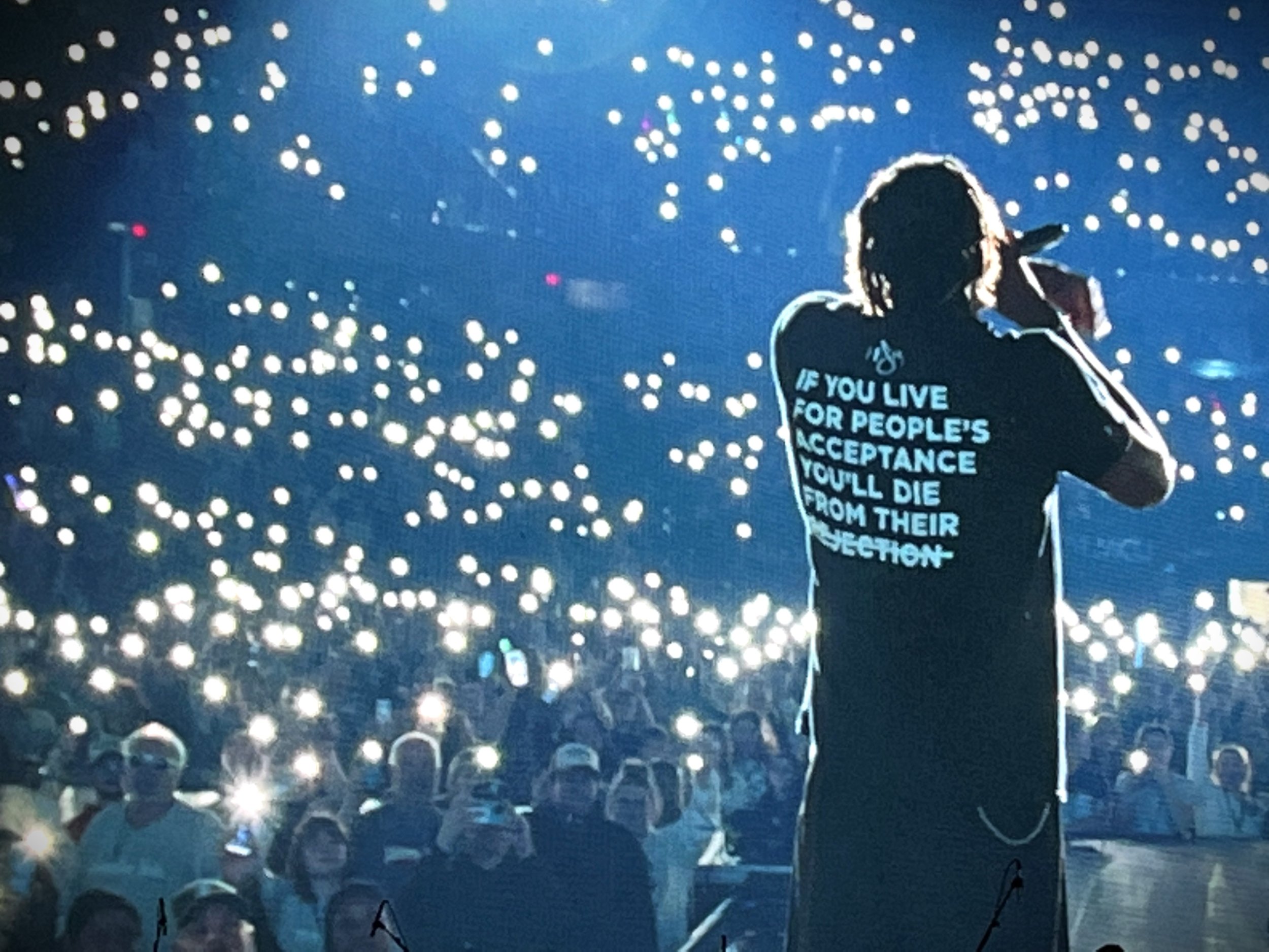Lecrae, aka Texas native Lecrae Moore, opened with “Walk.” but soon segued to “Spread the Opps,” backed by its concept video on the large screen at the rear of the stage.