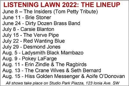 After showcasing local and regional acts with limited seating during the pandemic, the Studio Park piazza off Ionia Avenue SW will rev up starting in June with diverse national touring acts Hiss Golden Messenger & Aoife Donovan, Dirty Dozen Brass Band, Pokey LaFarge, Ladysmith Black Mambazo, Carsie Blanton and Red Wanting Blue while boosting capacity to 500 for its 2022 concerts.
