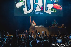 Opening the show was Cleveland rapper AMG. Backed by a large crew hype men, AMG set the bar early for the level of energy that every succeeding performer expected out of the crowd. AMG’s 1991 hit “Betta Have My Money” has been prominently sampled and reworked so many times, Saturday’s audience may have thought they were hearing a cover when it was performed as a closer.