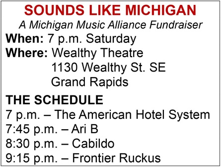 Jacob Betts from Grand Rapids alt-rock band The American Hotel System described the upcoming “Sounds Like Michigan” benefit at Wealthy Theatre in a nutshell — perfectly encapsulating what event host Michigan Music Alliance is all about as a nonprofit aid to Michigan musicians.