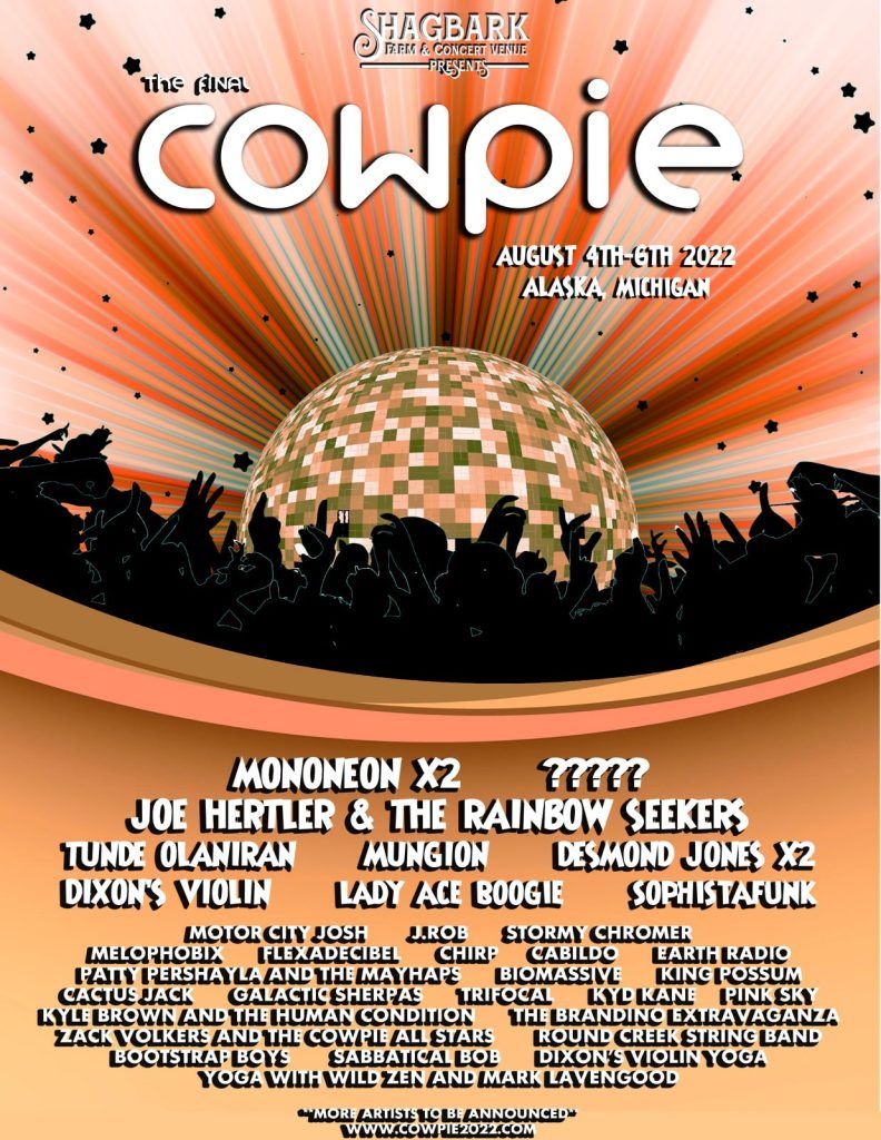 It’s been a long time coming, but the “final” Cowpie Music Festival is set to unfurl in August with bass phenom MonoNeon, Michigan fave Joe Hertler & The Rainbow Seekers, jam band Mungion and Flint pop/rap/dance star Tunde Olaniran.