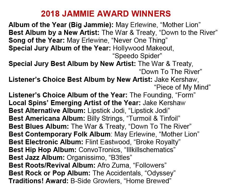 Ogle the robust Local Spins photo gallery and video below. And for even more coverage, videos and photos from The Jammies, click here: May Erlewine, The War & Treaty, Hollywood Makeout roll up big wins at Jammie Awards
