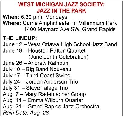 “There’s something for everyone this summer, and there is a balance of local favorites as well as some artists who are coming to Grand Rapids from elsewhere,” said Jordan VanHemert, a member of the jazz society board and director of jazz studies at Schwob School of Music at Columbus State University.