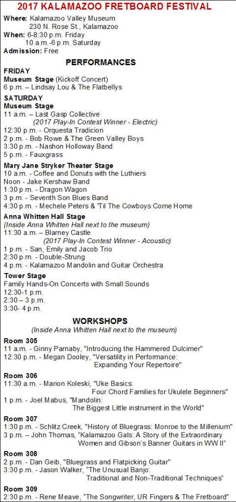 And check out Local Spins’ coverage and photo gallery from the 2016 festival online here: String Paradise – Kalamazoo Fretboard Festival draws thousands for upbeat West Michigan bands, instrument displays
