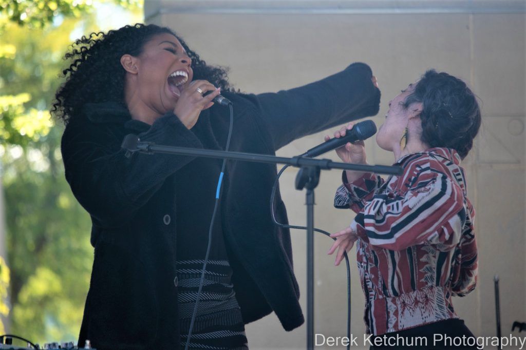 Collaborative Joy: Singer Sarena Rae joined Hannah Laine and Earth Radio on stage Sunday. (Photo/Derek Ketchum)