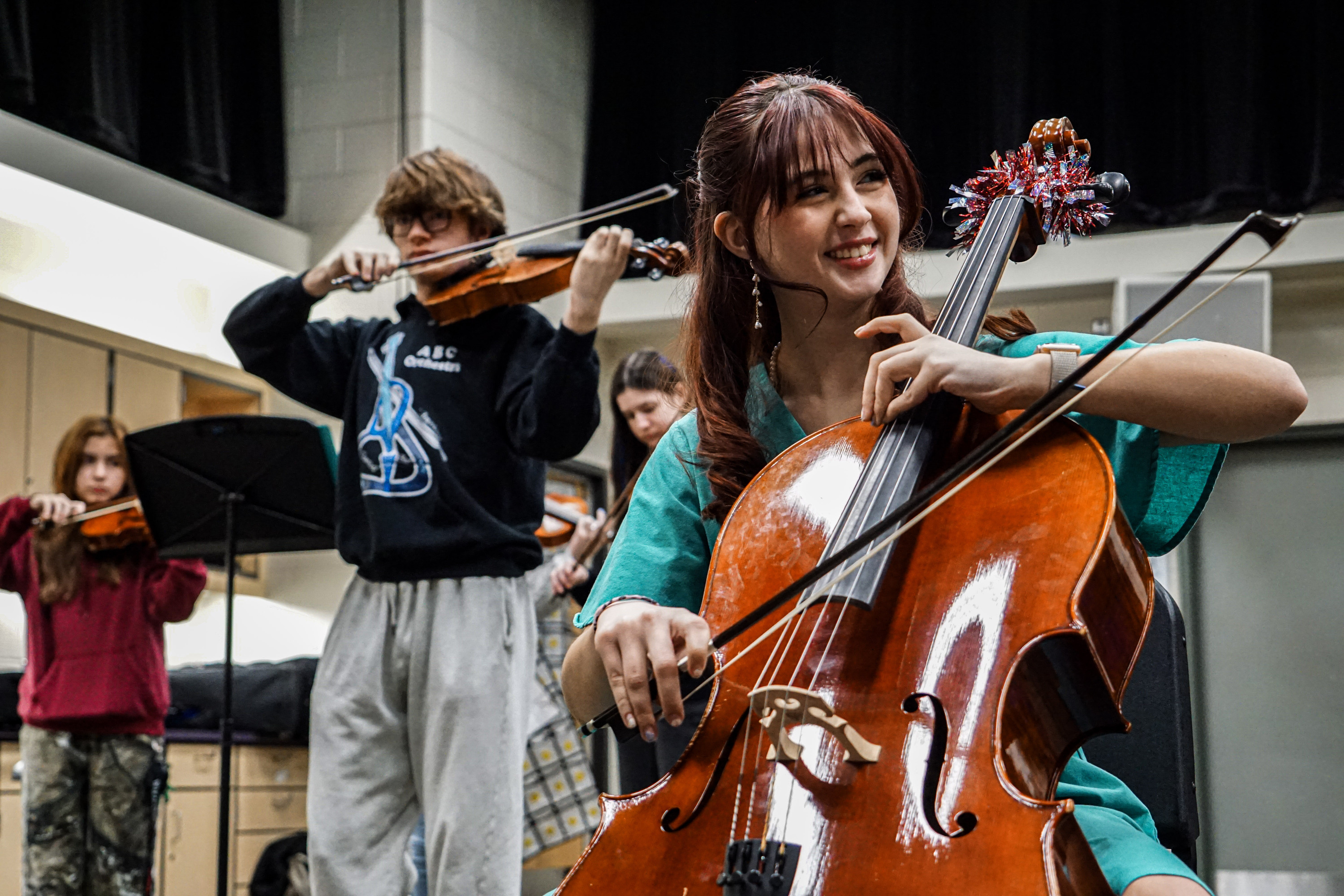 ‘Everyone Here is Having Fun’: Members of the ABC Orchestra at East Kentwood High School. (Photo/Noah Snyder)