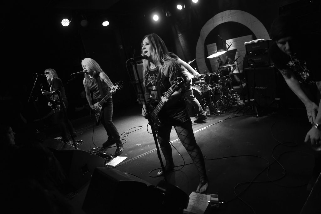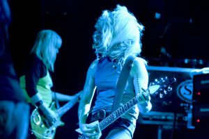 In the ’90s, L7 surely played every place with a horrible toilet between here and Osaka. (Yes, that’s how those things went, and usually still go.) Sparks felt inclined to compliment the Pyramid Scheme on its cleanliness: “You guys should be very thankful that this club exists… it’s a cool one,” she said, noting its “lack of penis graffiti,” surely an anomaly. She then helped fill the room with the sounds of a guitar turned up so loud it distorts. While many things around us change, it’s comforting to know that rock ‘n’ roll stays the same.