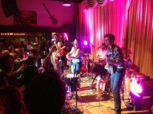 You can listen to a podcast of the interview here, and check out a video of their performance at the bottom of this post. And as you’ll see, it’s pretty tough for this crew to contain its hyperactive musicality.