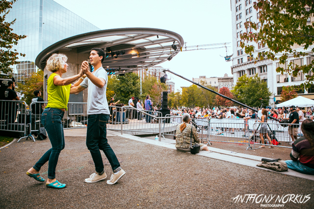 Dancing into ArtPrize: Bands will again perform during ArtPrize’s final week on Rosa Parks Circle, but expect to see musicians promoting song entries by busking around town, too. (Photo/Anthony Norkus)