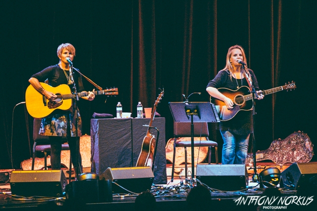 Songwriting Soulmates: Shawn Colvin, left, and Mary Chapin Carpenter at the Forest Hills Fine Arts Center. (Photo/Anthony Norkus Photography)
