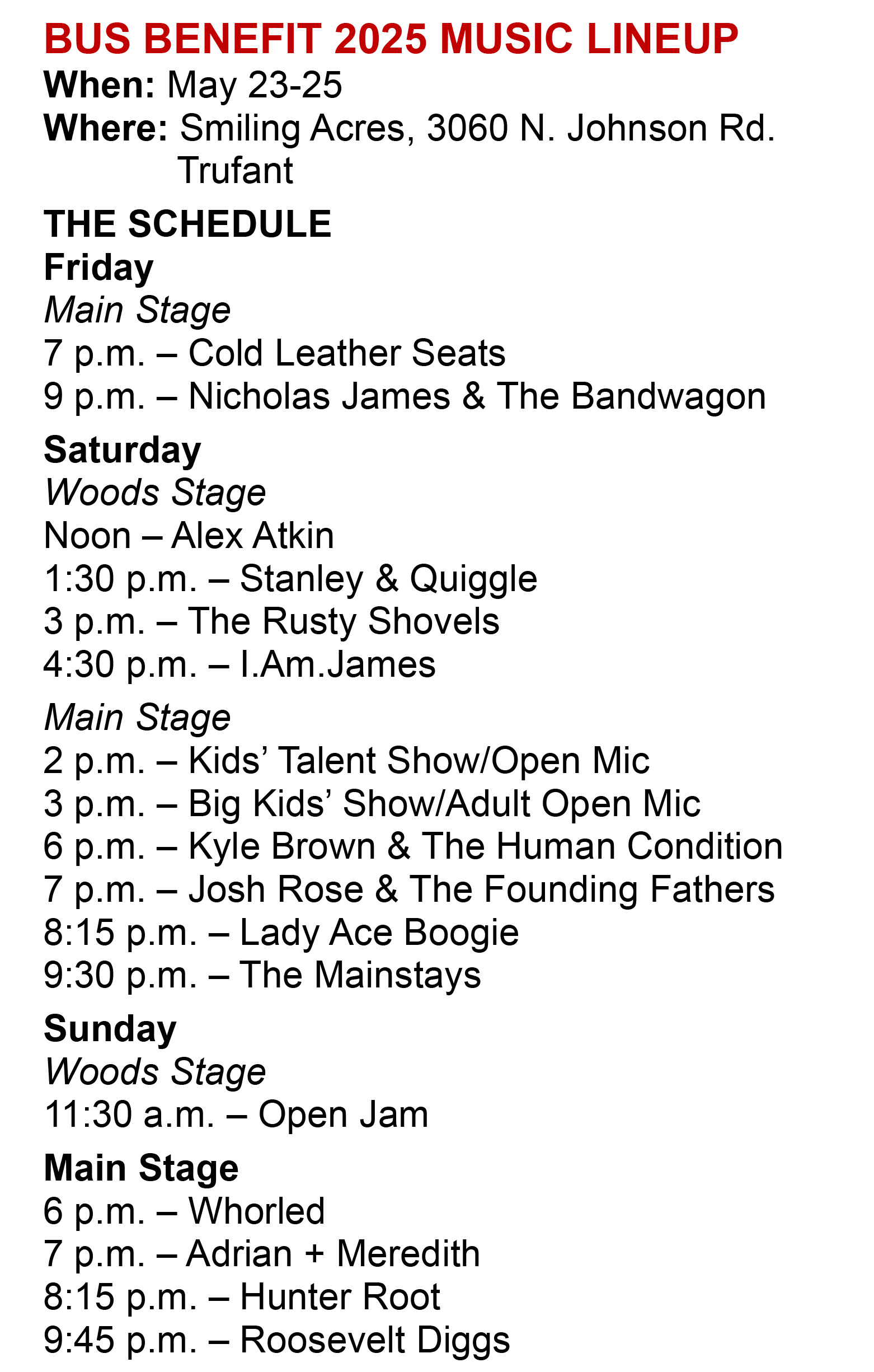 With more than a dozen performances by regional acts on two stages over the Memorial Day weekend, Buses by the Beach’s 2025 Bus Benefit outside Trufant gets the summer started with plenty of cozy musical camaraderie.