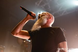 Opening number “Broken Cog” didn’t thunder and rage, instead leading a game Grand Rapids audience into bleakness, vocalist Jens Kidman almost whispering the lyrics as the band layered eerie guitar textures atop each other.