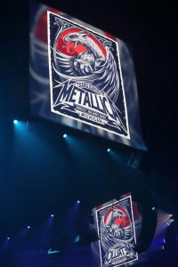 Visually, the highlight was “Moth Into Flame,” when a series of mini-drones lit with single white lights rose from the stage and buzzed like fireflies, sometimes forming a trio of spinning interlocked rings. Ever since the late ’80s, when a massive “Lady Justice” was assembled and destroyed during the set, and in the ’90s, when the stage featured a “snake pit” in the middle for lucky fans to watch with unprecedented intimacy, Metallica’s productions have gone above and beyond the simple explosive trappings you may expect from a band that plays primarily loud, hard and fast heavy metal.