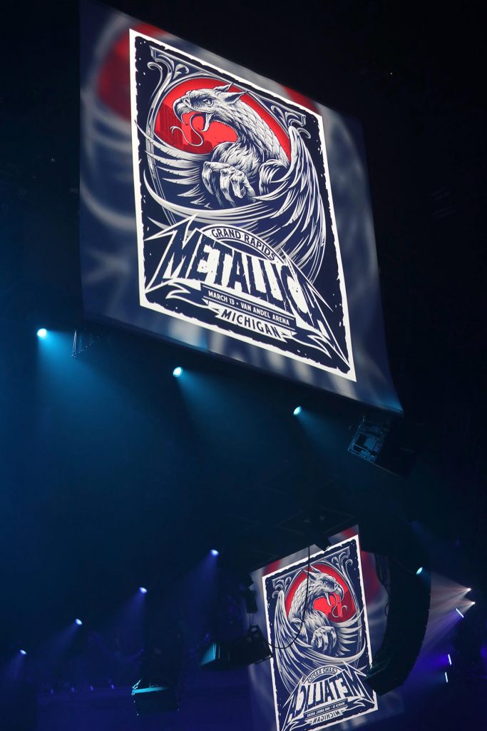 Of course, we also pay for the presentation, which must be extraordinary. For Metallica, that’s par for the course. Wednesday, the biggest metal band in history returned to Grand Rapids’ Van Andel Arena for the first time since 2009, once again playing in the round, once again making most every other arena spectacle with a big LED wall backdrop look as lame as a geriatric donkey.