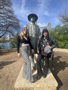 Part of the Michigan Contingent: Reveling in Austin’s SXSW and posing with a statue of Stevie Ray Vaughan. (Courtesy Photo)