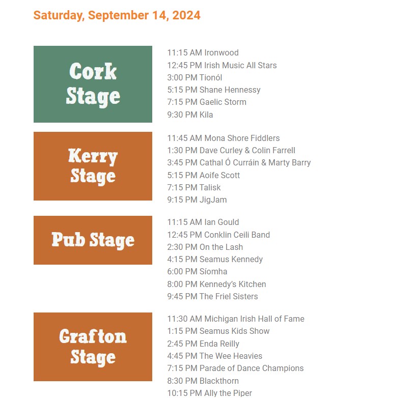 MICHIGAN IRISH MUSIC FESTIVAL 2024: THE SCHEDULE