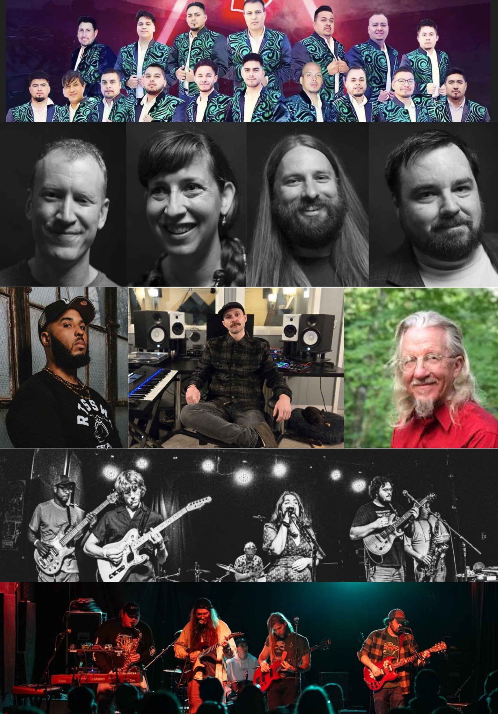 First-Time Jammies Acts: From top, Banda El Bajio, Free Hat, Wills Piff, Pablo Eskobear, Peter Madcat Ruth’s C.A.R.Ma. Quartet, Short Panic, Vernon Potts (Courtesy Photos/Brady Olsen/Dan Terpstra)