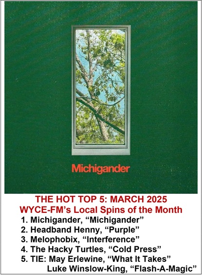 “Michigander” — released in February by Totally Normal Records — soared to No. 1 on the Local Spins Hot Top 5 Chart for March, representing the release by a Michigan artist that received the most radio airplay at Grand Rapids’ WYCE (88.1 FM). It jumped from No. 3 in February.