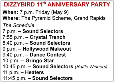 The evening will feature performances by Atlanta indie-rockers Gringo Star (with a new album, “Sweethearts,” released earlier this month), Grand Rapids surf/garage rock favorites Hollywood Makeout, emerging dark-wave artist Crystal Trench and the reunion of psych rock’s Heaters, Dizzybird’s first signing and a band playing its first show together in five years.
