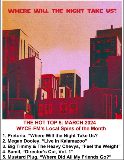 Today’s edition of Local Spins on WYCE rolls out a countdown of the Hot Top 5 Chart of regional releases for March, as well as debuting tracks by a bevy of Michigan artists.
