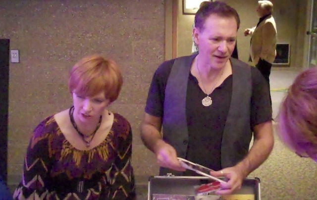 Peter Karp & Sue Foley were presented portraits of themselves by The Pinnacle Center’s Bill Worst on Saturday.