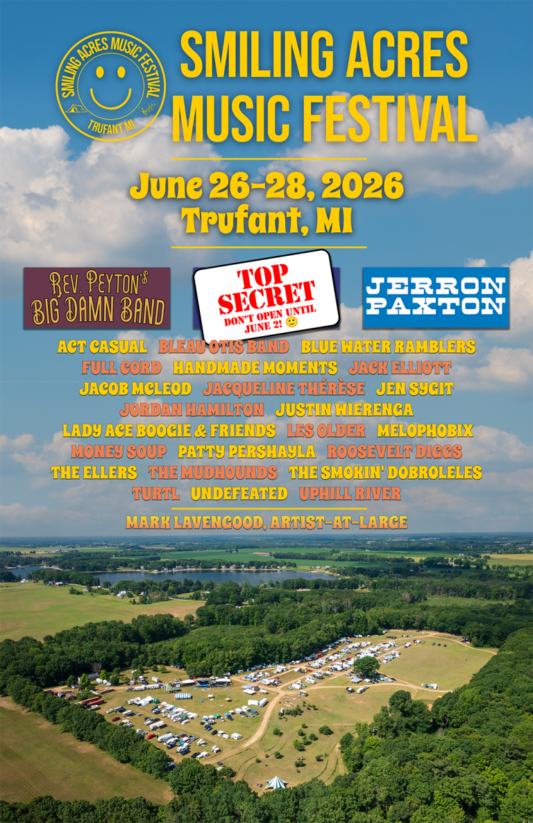 But the Smiling Acres Music Festival taking place for the sixth time June 26-28 stands out as the property’s flagship celebration, and this year’s announced lineup boasts a couple of national stars — California blues/jazz multi-instrumentalist Jerron ‘Blind Boy’ Paxton and Indiana roots/country blues favorite The Reverend Peyton’s Big Damn Band — along with an eclectic roster of Michigan artists.