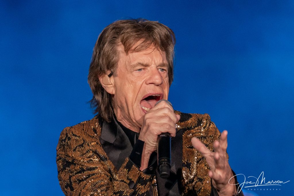 Jagger noted that Monday’s performance was the band’s 21st in Detroit, and he thanked fans for all their support over the decades, while noting that the Stones’ first appearance in the Motor City was back in 1964 (at Olympia Stadium).